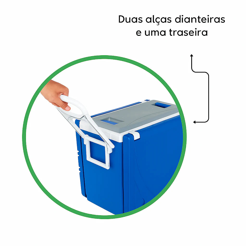 E não é só praticidade: seu revestimento é feito do mesmo material usado nos famosos copos e garrafas Stanley, garantindo que suas bebidas fiquem geladas por mais de 16 horas seguidas. Além disso, conta com rodinhas resistentes que facilitam o transporte e alças reforçadas que permitem levar até mesmo em duas pessoas sem esforço. É o tipo de produto que transforma qualquer encontro em um momento inesquecível.