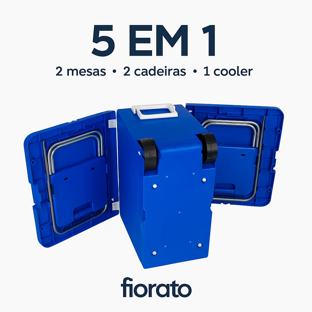 Imagine chegar na praia, no camping ou no churrasco com um único produto que resolve tudo: mesa, cadeiras, suporte para sacolas, armazenamento e ainda mantém suas bebidas sempre geladas. Esse Cooler 5 em 1 foi desenvolvido para trazer praticidade e conforto em qualquer ocasião. Você não precisa mais carregar vários itens – aqui você tem tudo em um só!